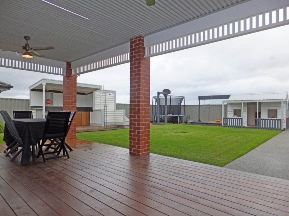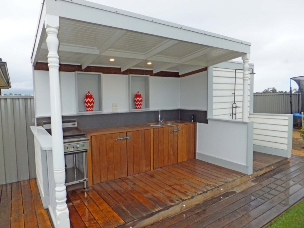 Designed for entertaining the open plan living is supported by a spacious kitchen with Caesar stone bench tops, huge walk in pantry plus a servery to the decked alfresco area as well as an adjacent outdoor kitchen with natural gas BBQ, outdoor toilet and shower