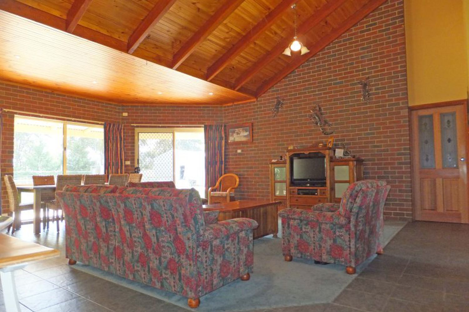 The property boasts a tradesman built 4 bedroom Brick Veneer home with open plan living highlighted by cathedral ceilings and red gum kitchen