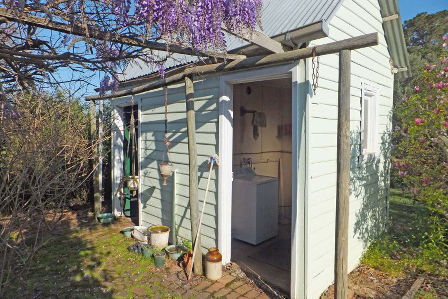 Offers a quaint 2BR cottage with 2 living areas nestled amongst established surrounds