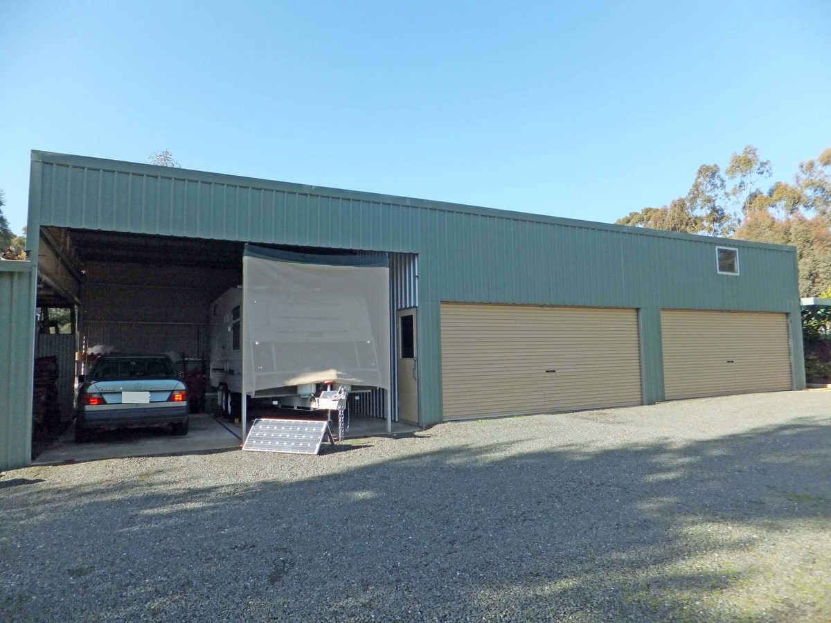 Shedding consists of a 18m x 6.9m colorbond shed with power and concrete floor, 2 double roller doors and 2 bay open caravan accommodation