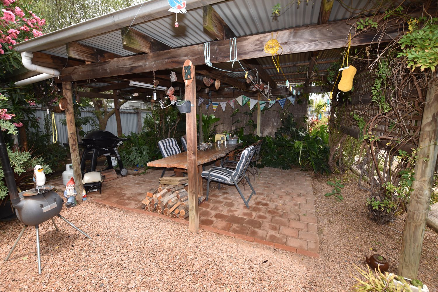 Outside the property offers an inviting paved pergola, garage, carport and caravan port with side access set amongst a well established garden