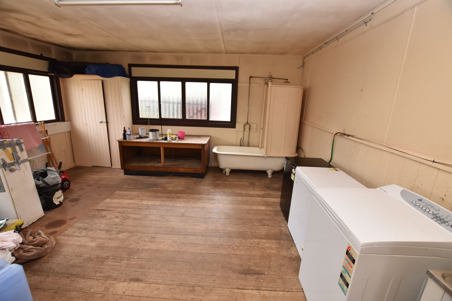 Just outside the back door is a multipurpose room with extra shower over an original claw foot bath currently used as a laundry