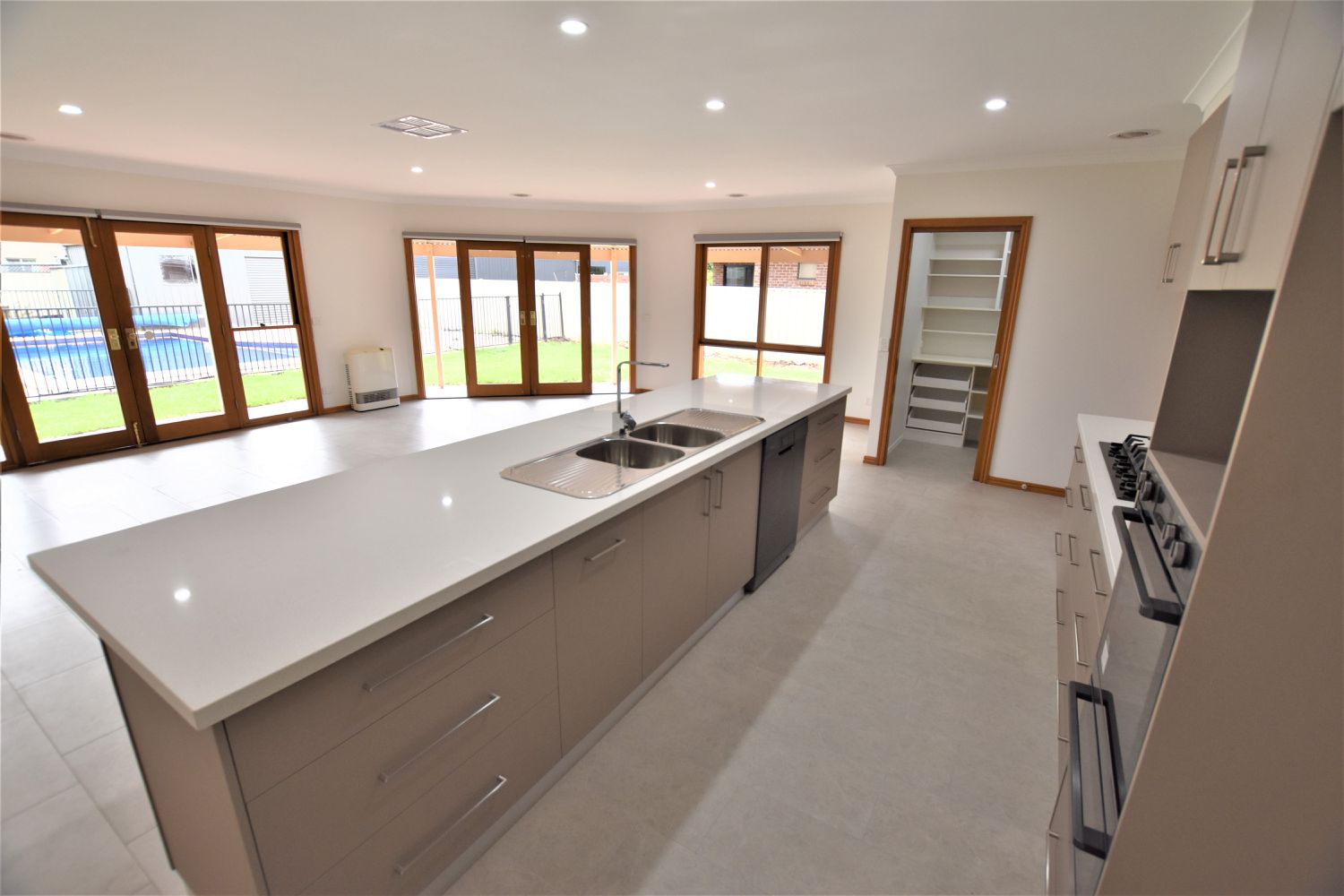 The home is highlighted by a stunning new kitchen with Caesar stone bench tops overlooking the spacious northerly facing living area